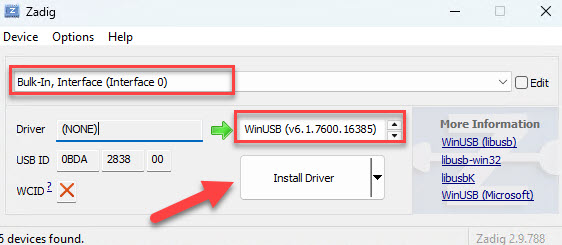 👉 https://zadig.akeo.ie/ - Run Zadig as Administrator