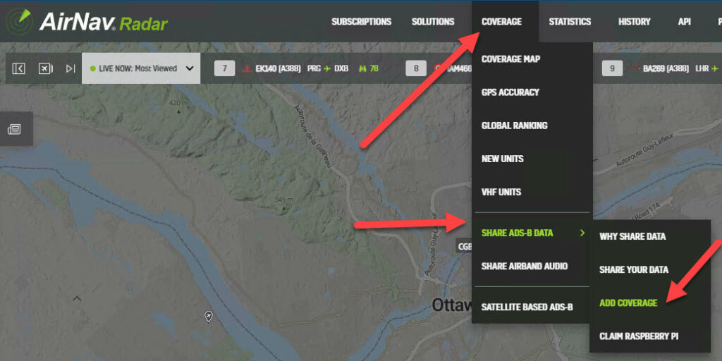 Once dump1090 is running, connect it to AirNav RadarBox.